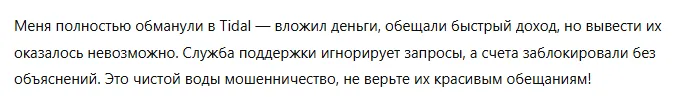 Негативные отзывы о брокере Tidal: реальные истории пострадавших