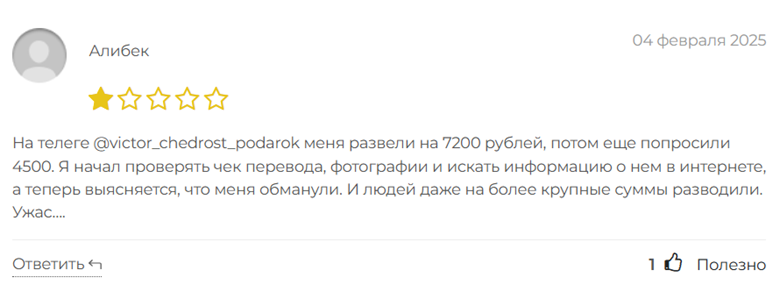 - Отзывы клиентов и пострадавших о телеграм-канале