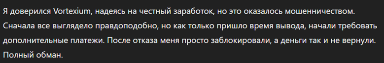 - Отзывы клиентов и пострадавших о телеграм-канале Vortexium